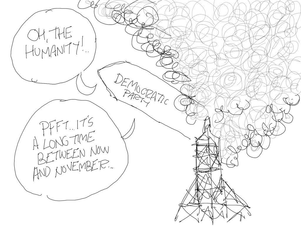 This too is a cliché and I liked it, but then I saw at least two other cartoons using the Hindenburg to describe President Biden’s performance. This is why I have to be careful with using a cliché. I probably care about this more than other cartoonist. Maybe I’m too uptight.