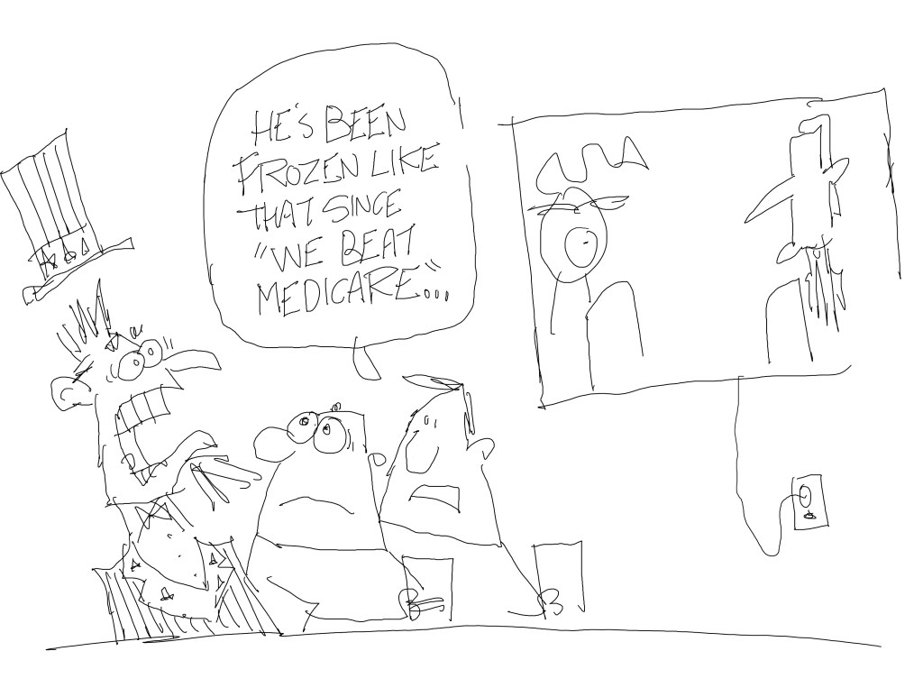 In addition to doing one cartoon on Biden and another on Trump, I needed to do one on each for my newspaper clients. Since CNN didn’t take this one, I did it for my papers. I was sending it to CNN when Jessica, one of the editors, emailed that they had selected the cartoons.