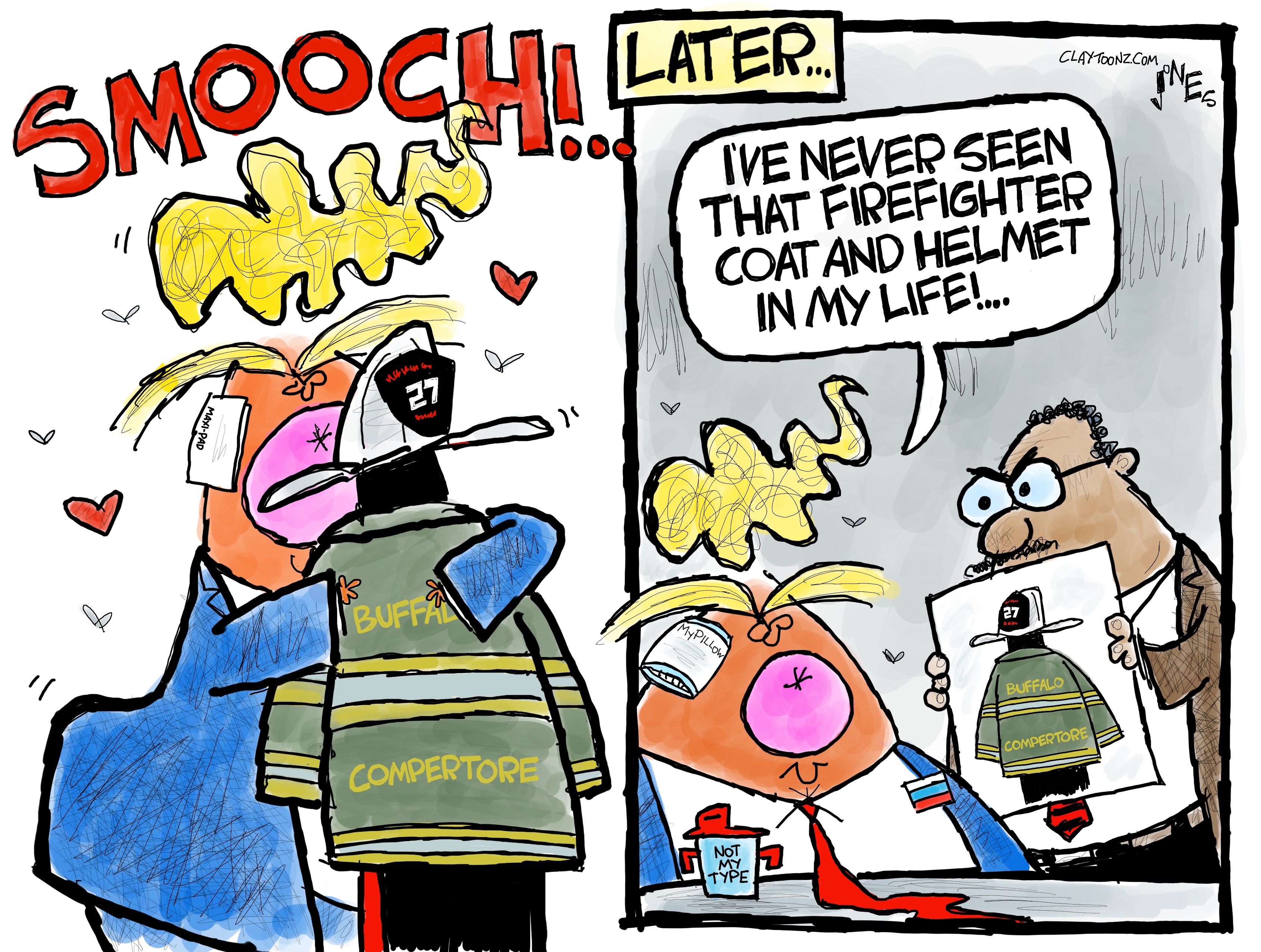2. Sorry I couldn’t help this time, Clay, but hopefully next time. Great cartoon … Trump kissing the helmet reminds me of that time he hugged the flag in a sickening display of … fake patriotism from a ‘man’ who is loyal only to himself.