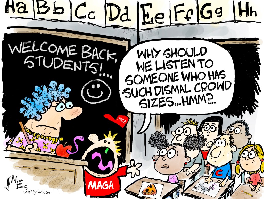 Great cartoon! Reminds me of when I covered a middle school class a few years ago that had MAGA kids in it and the teacher left a poorly planned assignment for the class on what they felt makes the United States a great country (i.e. what makes America great – you can see where this is going). Long story short, the MAGA kids spewed lies about vaccines, attacked my character for correcting the nonsense they were spewing (my mistake), and chanted “Let’s Go, Brandon!” at the tops of their voices by the end of class.