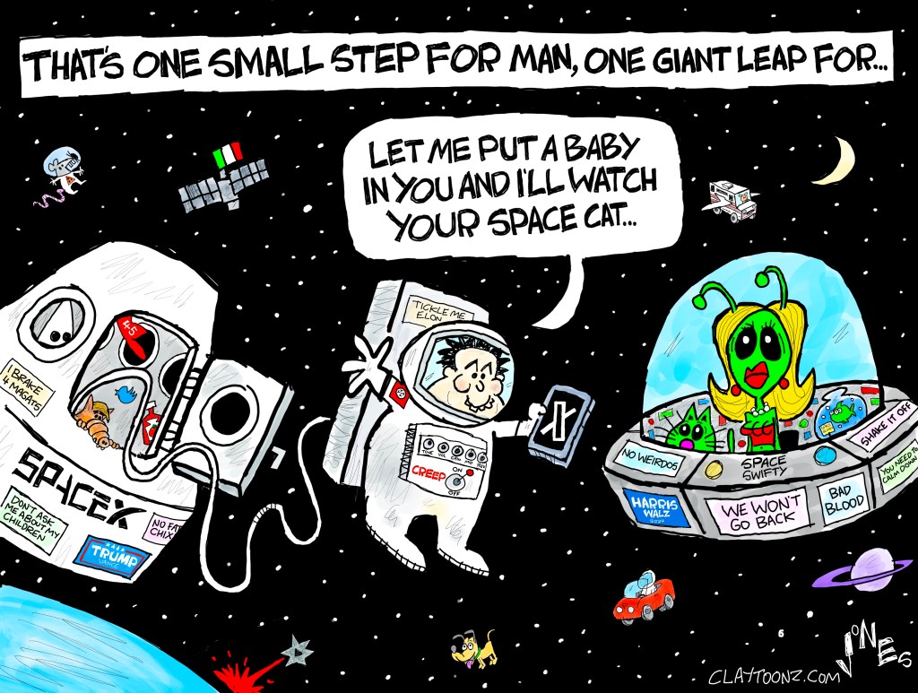 1. And not to disappoint anyone, elon the potential baby-daddy, mused on Xtwitter – now deleted – why no one wanted to do something to the President or the Veep. Is the “bro” nuts???!! At least the Secret Service say he is now on their radar…..As much as I dislike the orange convicted felon, I simply wish he would fade away into the night but there is too much money in being a candidate and campaigning – and desperately needs money.