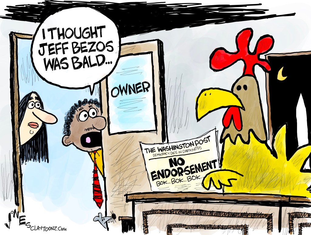 1. I am done with WaPo. I am listening to Jonathan Capehart as I type who does not like this oligarchic decision. Right here in fair Mpls the local paper decided against endorsements of anykind before the two this week. This last few years has really revealed the nature of country as all the trappings have been ripped off.