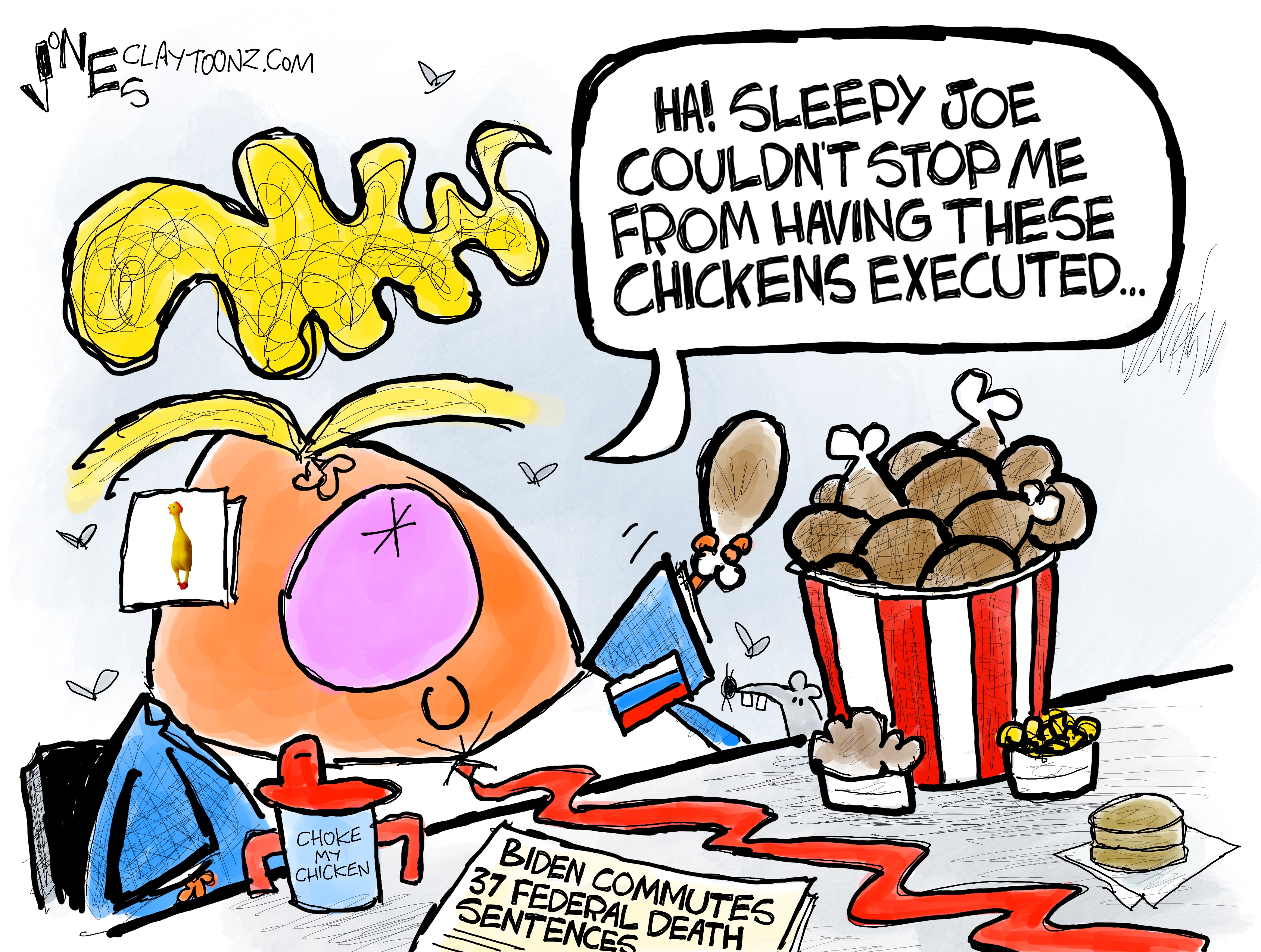 Signed prints: The signed prints are just $40.00 each. Every cartoon at Claytoonz is available. You can pay through PayPal. If you don’t like PayPal, you can snail mail it to Clay Jones, P.O. Box 3721, Fredericksburg, VA 22402. I can also take Venmo and my account there is clay-jones-87.