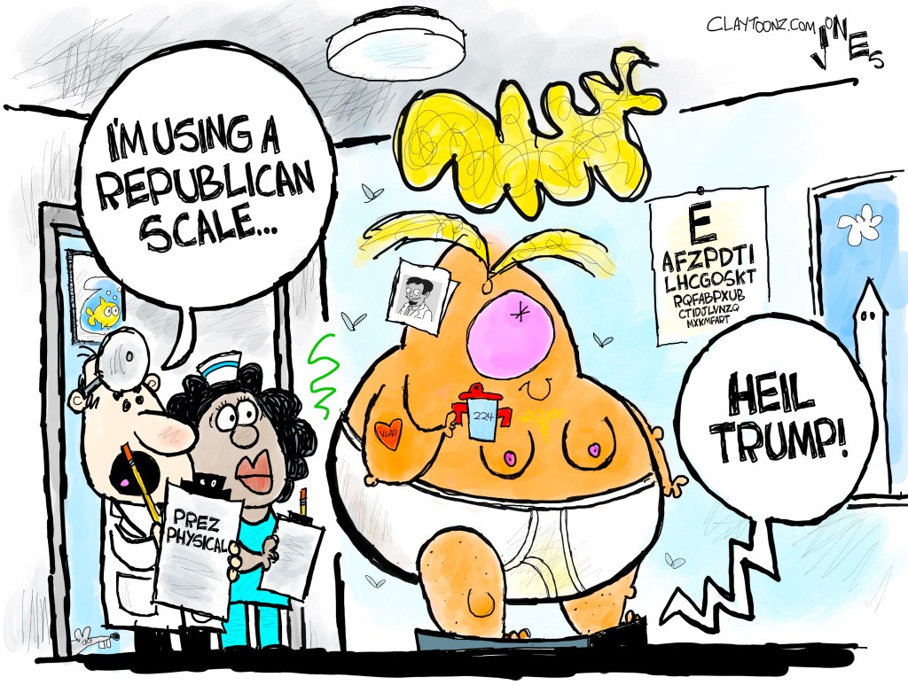 Support your local cartoonist: If you want to support the cartoonist, please donate through PayPal to clayjonz@gmail.com, Venmo to clay-jones-87, or snail mail it to Clay Jones, P.O. Box 3721, Fredericksburg, VA 22402. All support is appreciated.