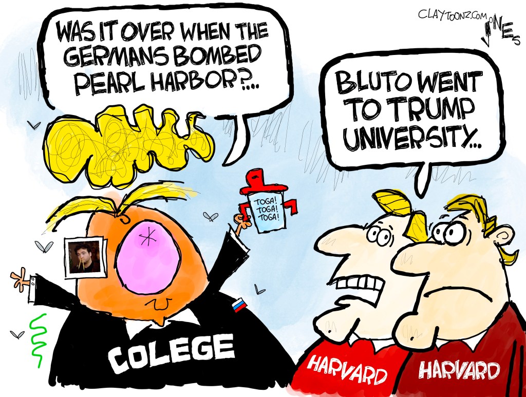Signed prints: Each signed print costs $40.00. Every cartoon at Claytoonz is available. Payment is accepted through PayPal, Venmo (clay-jones-87), or snail mail to Clay Jones, P.O. Box 3721, Fredericksburg, VA 22402. Add to the note what you’re purchasing.