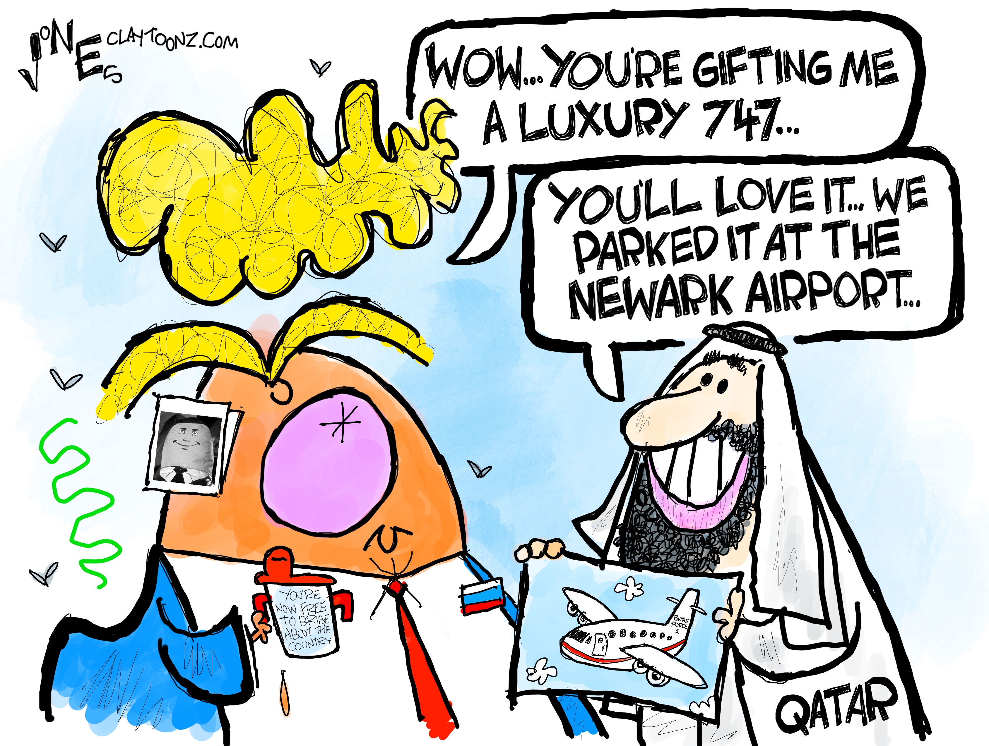 Signed prints: Each signed print costs $40.00. Every cartoon at Claytoonz is available. Payment is accepted through PayPal, Venmo (clay-jones-87), or snail mail to Clay Jones, P.O. Box 3721, Fredericksburg, VA 22402. Add to the note what you’re purchasing.