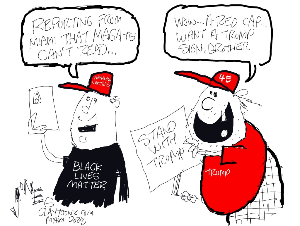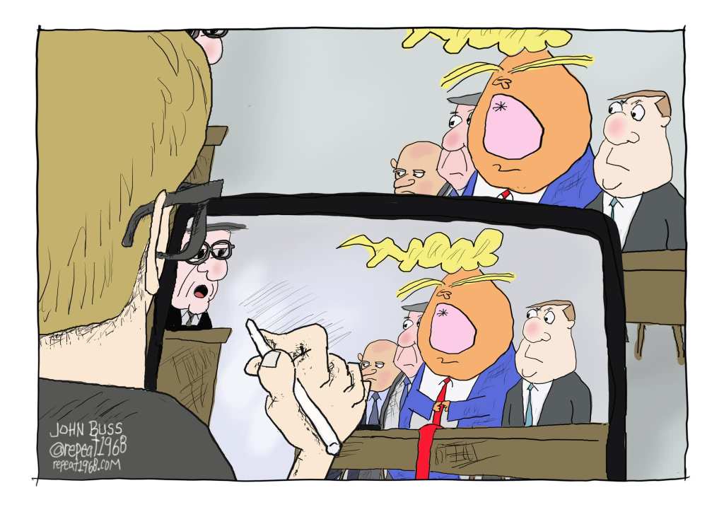 My friend and fellow cartoonist John Buss produced this cartoon today intentionally in my style to pay tribute. This is a huge honor and I’m blown away by it. I’m just worried his imitation of my Trump caricature may be better than the real thing. John is also one of the contributors who helped make this trip happen. Actually, three cartoonists made contributions. Thank you, guys, and lady.