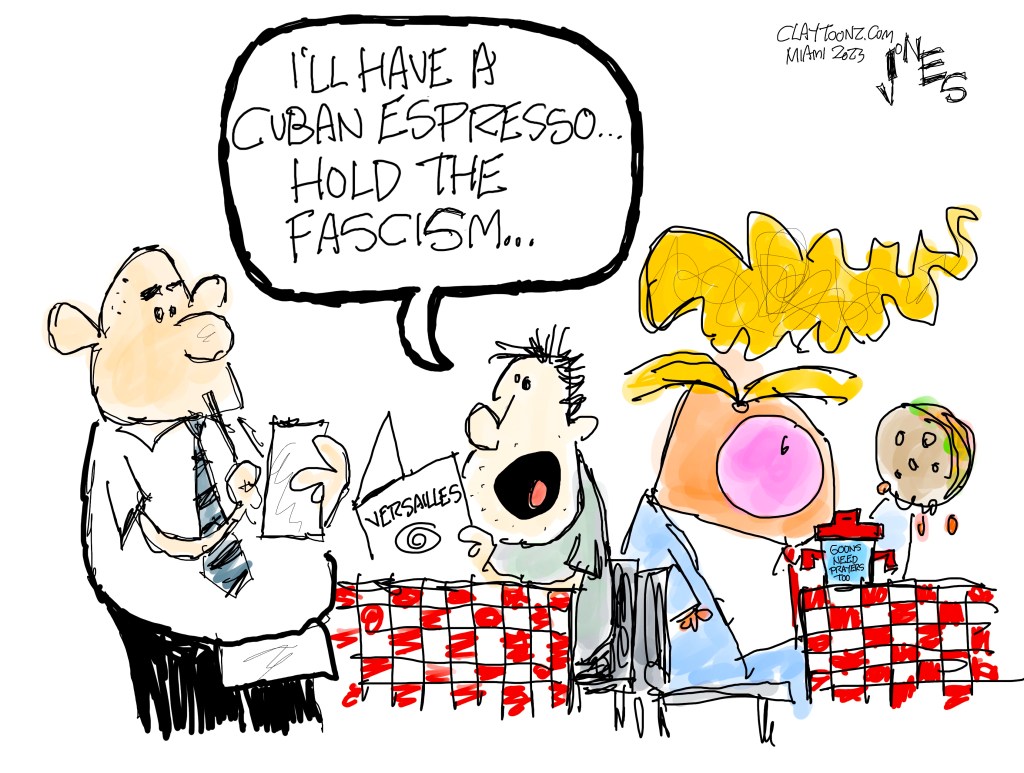 Now, the only place in Miami where I had seen MAGAts was at the courthouse but when I arrived at Versailles, there was about four of them in front of the restaurant wearing their stupid MAGAt gear and waving their stupid MAGAt signs and showing off thier stupid MAGAt faces.