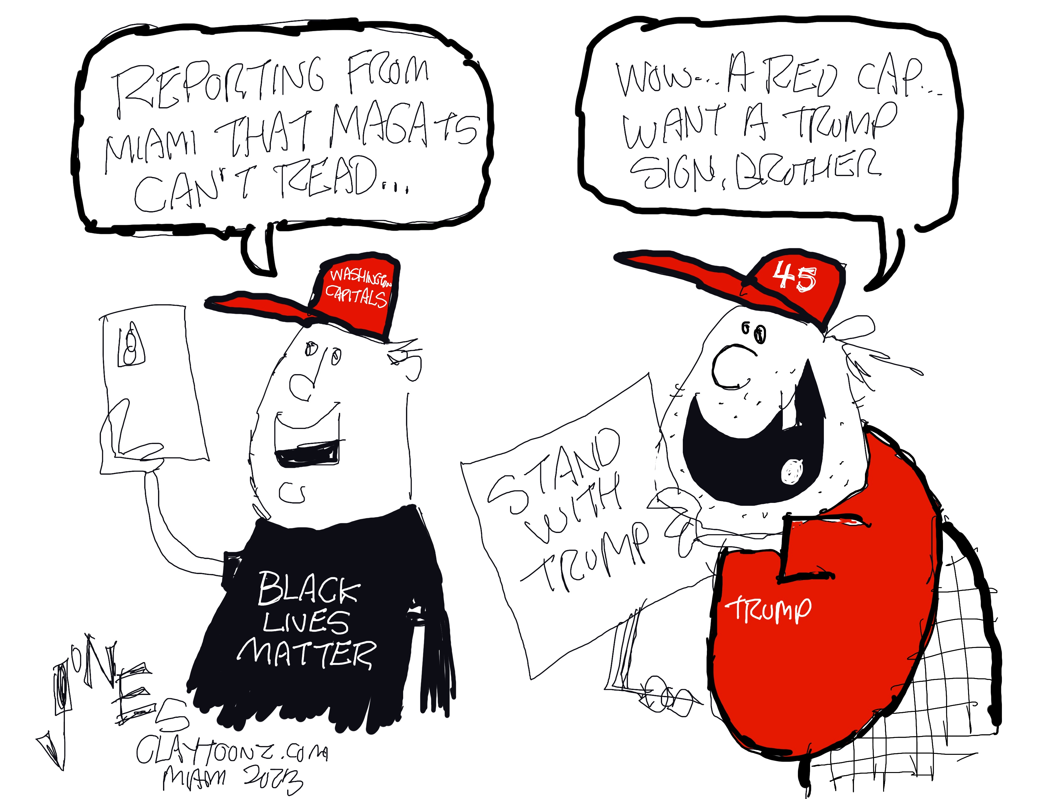My friend and fellow cartoonist John Buss produced this cartoon today intentionally in my style to pay tribute. This is a huge honor and I’m blown away by it. I’m just worried his imitation of my Trump caricature may be better than the real thing. John is also one of the contributors who helped make this trip happen. Actually, three cartoonists made contributions. Thank you, guys, and lady.